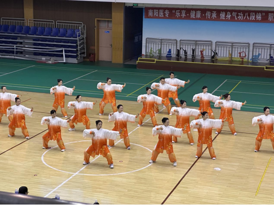 学校工会举办的“南阳医专‘乐享▪健康▪传承 健身气功八段锦’职工大赛”